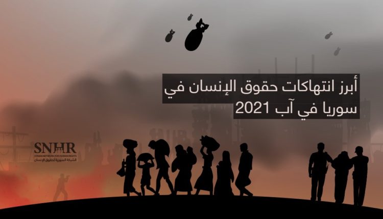 أصدرت الشبكة السورية لحقوق الإنسان يوم السبت 4 أيلول 2021، تقريرها الشهري الخاص الذي يرصد حصيلة أبرز انتهاكات حقوق الإنسان في سوريا في آب 2021، وأشار التقرير إلى أن تمرير المساعدات الأممية عبر النظام السوري المتورط في تشريد ملايين المواطنين وفي نهب المساعدات يشكل فشلاً دولياً فاضحاً.