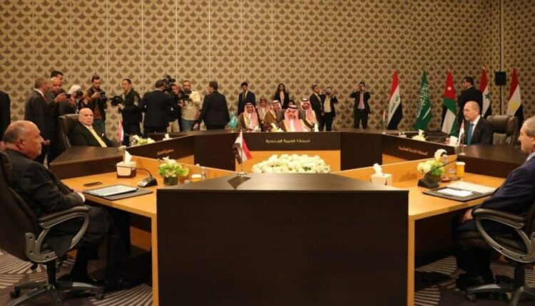 عَقَد وزراء خارجية الأردن والسعودية والعراق ومصر اجتماعاً في عَمان اليوم الإثنين 1 أيار 2023 مع وزير الخارجية والمغتربين في الجمهورية العربية السورية الشقيقة، بدعوة من نائب رئيس الوزراء ووزير الخارجية وشؤون المغتربين في المملكة الأردنية الهاشمية أيمن الصفدي، واستكمالاً للاجتماع الذي استضافته المملكة العربية السعودية، بدعوة من وزير الخارجية سمو الأمير فيصل بن فرحان آل سعود، لوزراء خارجية دول مجلس التعاون لدول الخليج العربية والمملكة الأردنية الهاشمية وجمهورية العراق وجمهورية مصر العربية، ومتابعة للاتصالات التي أجراها عدد من هذه الدول مع الجمهورية العربية السورية، وبما يتفق مع المبادرة الأردنية القائمة على إطلاق دورٍ عربيٍ قيادي في جهود حل الأزمة السورية وفق منهجية خطوة مقابل خطوة والمبادرة السعودية وطروحات عربية أخرى.