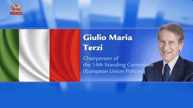 في جانب مهم من كلمته، دعا إلى عزل النظام الإيراني بالكامل واعتباره دولة منبوذة، على أن يتم تصنيف قوات الحرس الثوري كمنظمة إرهابية دولية على غرار ما طالبت به إيطاليا لأكثر من 30 عاماً. ذكر تيرزي أن النظام نشر الإرهاب في أنحاء العالم، مستذكراً الهجوم الإرهابي على نائب رئيس البرلمان الأوروبي السابق أليخو فيدال-كوادروس، ومحاولة تفجير مؤتمر المجلس الوطني للمقاومة الإيرانية في باريس عام 2018، التي تورط فيها الدبلوماسي الإرهابي أسد الله أسدي، ما يعكس حجم التهديد الذي يمثله النظام دولياً.