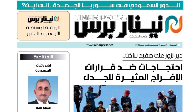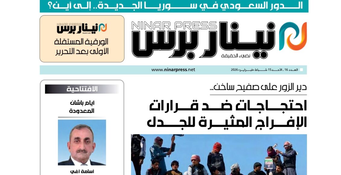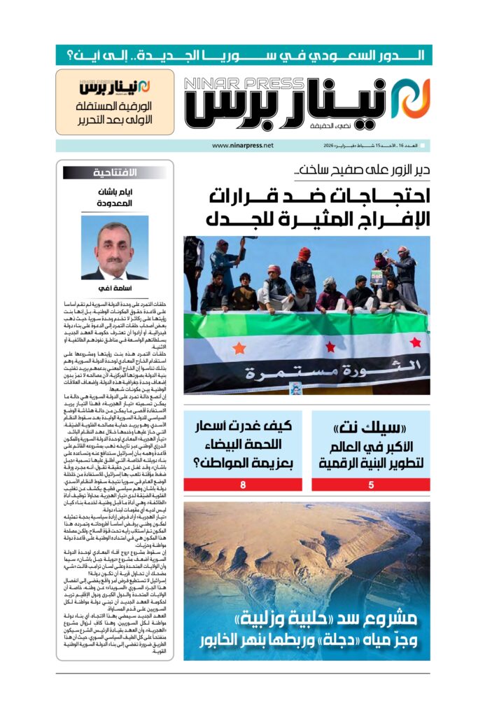 الأعداد الورقيةالعدد 307مقال مثبّت العدد الورقي رقم /16/ من نينار برس بواسطة إدارة الموقع تم النشر بتاريخفبراير 14, 2026 0 شارك متابعة القراءةتنزيل 0 شارك FacebookTwitterWhatsAppالبريد الالكترونيTelegram