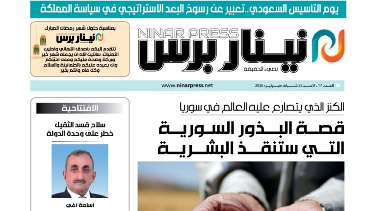 الأعداد الورقيةالعدد 308مقال مثبّت العدد الورقي رقم /17/ من نينار برس بواسطة إدارة الموقع تم النشر بتاريخفبراير 21, 2026 0 شارك متابعة القراءةتنزيل 0 شارك FacebookTwitterWhatsAppالبريد الالكترونيTelegram
