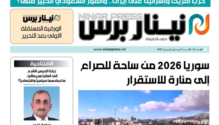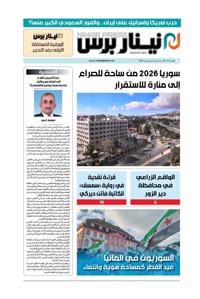 العدد 314الأعداد الورقيةمقال مثبّت العدد الورقي رقم /23/ من نينار برس بواسطة إدارة الموقع تم النشر بتاريخأبريل 4, 2026 0 62 شارك متابعة الفراءةتنزيل 0 62 شارك FacebookTwitterWhatsAppالبريد الالكترونيTelegram