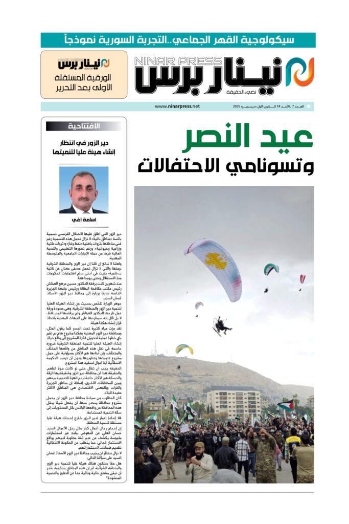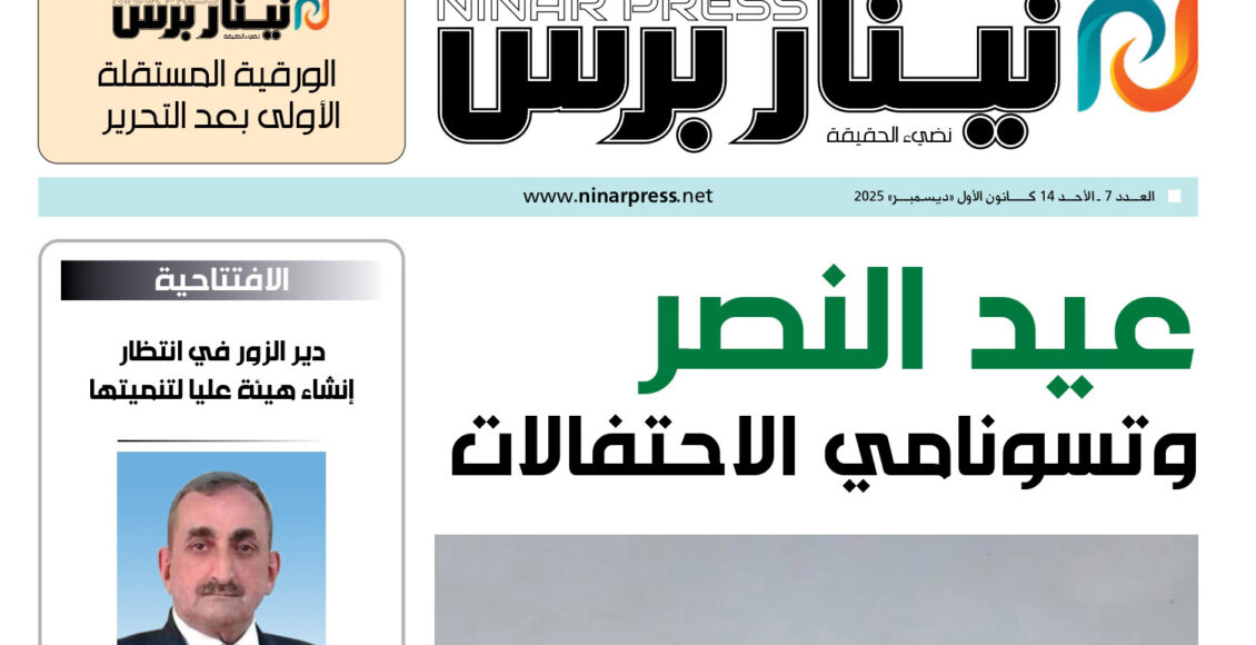 الأعداد الورقيةالعدد 298مقال مثبّت العدد الورقي رقم /7/ من نينار برس بواسطة إدارة الموقع تم النشر بتاريخديسمبر 13, 2025 0 شارك متابعة القراءةتنزيل 0 شارك FacebookTwitterWhatsAppالبريد الالكترونيTelegram