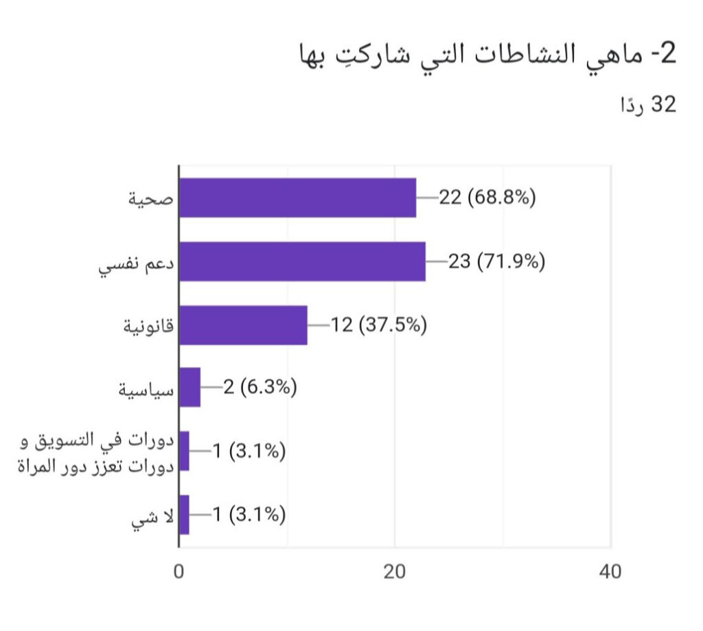 ويبين الاستطلاع التالي رغبة النساء على المشاركة في نشاطات وبرامج مجتمعية..