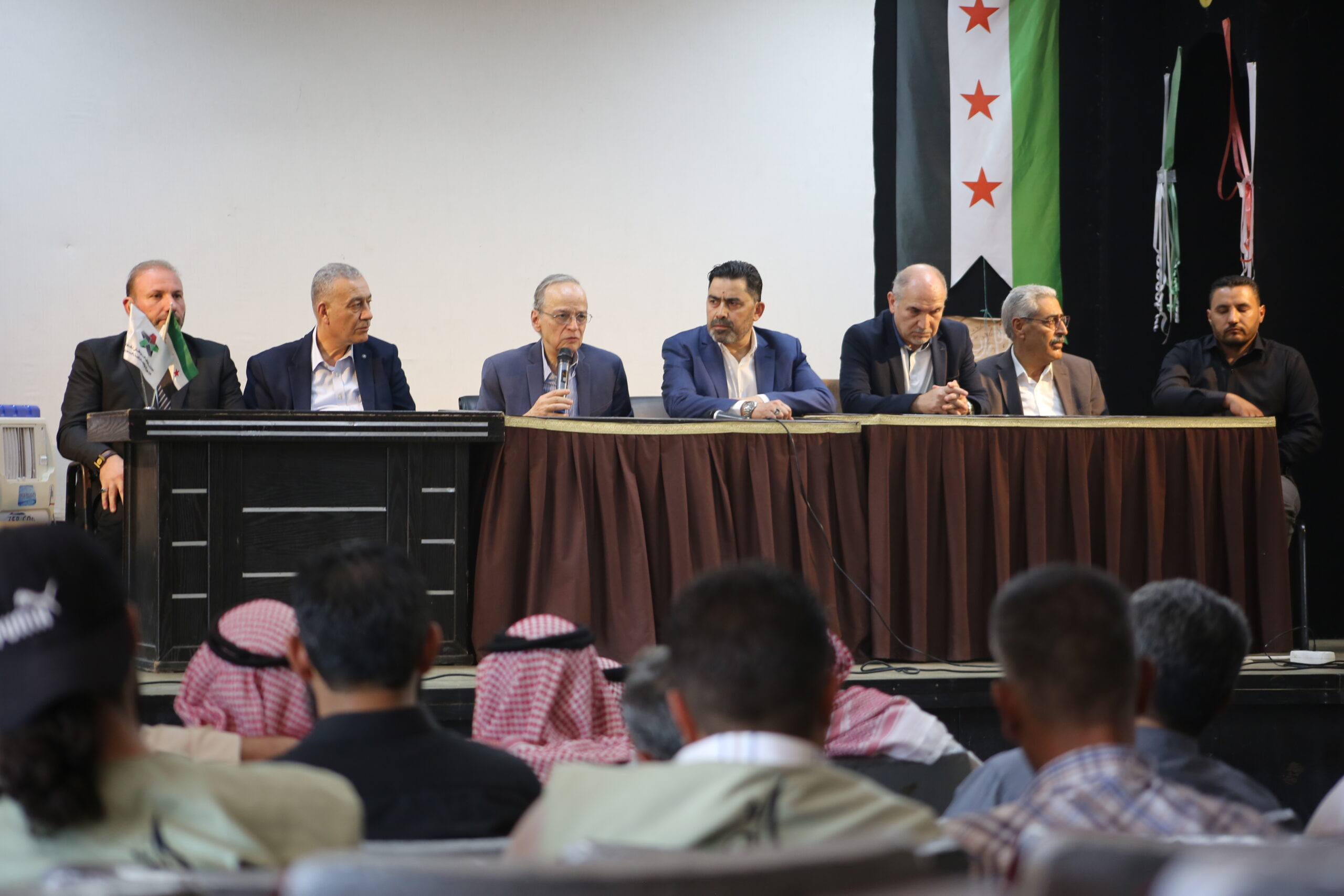 اللقاء مع شيوخ العشائر والهيئة السياسية والقادة العسكريين ناقش الوضع السياسي وجمود الملف السوري دولياً، والآليات الممكنة من أجل إحداث تغيير يؤدي إلى الوصول إلى بناء الدولة السورية بما يلبي تطلعات الشعب، وتنفيذ القرار الأممي 2254.