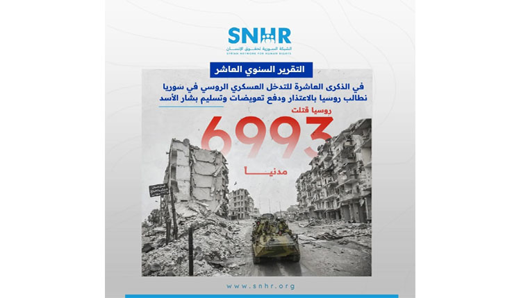في الذكرى العاشرة للتدخل العسكري الروسي في سوريا، أصدرت الشَّبكة السورية لحقوق الإنسان تقريرها السنوي مطالبةً روسيا بتقديم اعتذار رسمي للشعب السوري، ودفع تعويضاتٍ عادلة للضحايا، وتسليم بشار الأسد إلى العدالة الدولية بعد فراره إلى موسكو عقب سقوط نظامه في كانون الأول/ديسمبر 2024.