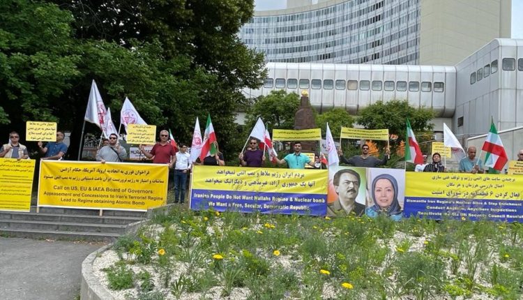 بالتزامن مع اجتماع مجلس محافظي الوكالة الدولية للطاقة الذرية، ينظم الإيرانيون الأحرار، أنصار المجلس الوطني للمقاومة الإيرانية، مسيرة احتجاجية يوم الثلاثاء 7 يونيو 2022، لليوم الثاني على التوالي في الساحة أمام مكان عقد محادثات فيينا.