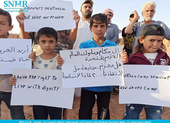 تحدث التقرير عن المخيمات في شمال شرق سوريا، وقال إن قوات سوريا الديمقراطية استمرت في احتجاز قرابة 58 ألف شخص بينهم نحو 17 ألف امرأة و37 ألف طفل في مخيمي الهول وروج، مشيراً إلى تدهور الأوضاع الإنسانية، وحرمان قاطني المخيمات من الرعاية الصحية وأبسط مقومات الحياة الأساسية بما فيها المياه الصالحة للشرب، والمرافق الصحية.