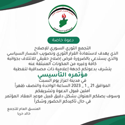 يُعقد بتاريخ الحادي والعشرين من شهر كانون الثاني/يناير في إعزاز المؤتمر التأسيسي لمجموعة تُطلقُ على نفسها اسم (التجمع الثوري السوري للإصلاح).