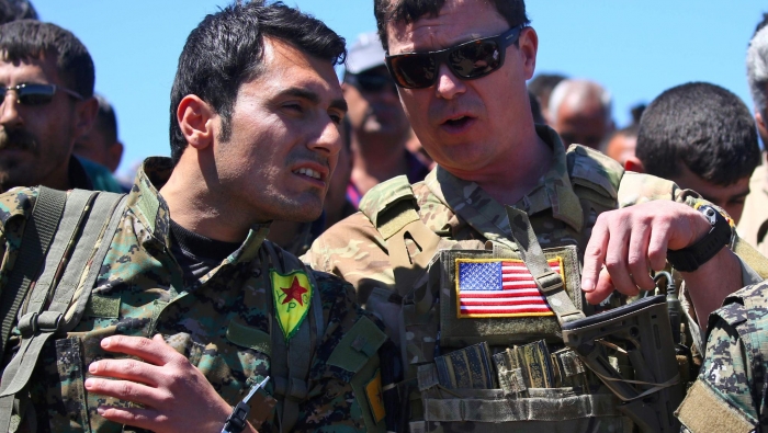 الأمريكيون دعموا ذراع حزب العمال الكردستاني (PKK)، في سوريا، وقام الأخير بقمع كل حراك وطني كردي سوري، رغم أن هذه الذراع مدرجة على لوائح المنظمات الإرهابية لدى الولايات المتحدة ذاتها، فقوات قسد مارست القمع والقتل بحق كل معارضيها من العرب أو الكرد، وعملت بصورة إرهابية على اتباع منهج التغيير الديمغرافي في مناطق الجزيرة السورية في الهول وقراها وفي غويران في مدينة الحسكة.