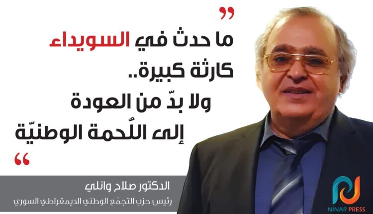 الدكتور صلاح وانلي رئيس حزب التجمّع الوطني الديمقراطي السوري لنينار برس: ما حدث في السويداء كارثة كبيرة ولا بدّ من العودة إلى اللُحمة الوطنيّة
