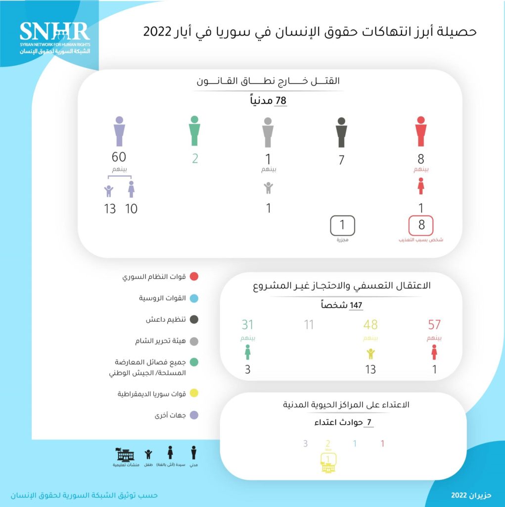 حصيلة أبرز انتهاكات حقوق الإنسان في سوريا في أيار 2022: