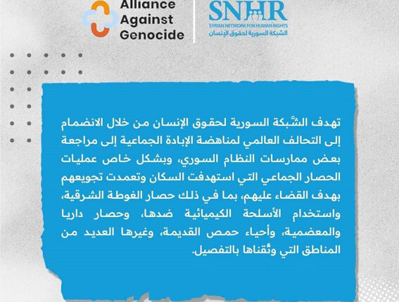 الشبكة السورية لحقوق الإنسان تنضم للتحالف العالمي لمناهضة الإبادة الجماعية