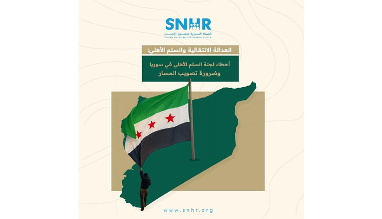 أصدرت الشَّبكة السورية لحقوق الإنسان تقريراً حقوقياً بعنوان: “العدالة الانتقالية والسلم الأهلي: أخطاء لجنة السلم الأهلي في سوريا وضرورة تصويب المسار”.