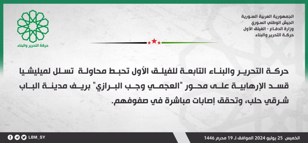 حركة التحرير والبناء تصدّ هجوماً لقسد على محور العجمي