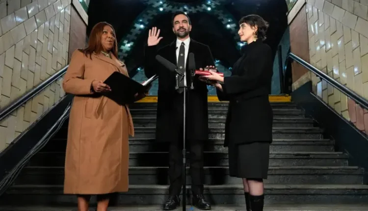 وأدى أول رئيس بلدية مسلم لنيويورك اليمين على نسخة من القرآن في محطة مترو تاريخية في منطقة مانهاتن، خلال مراسم قصيرة ترأستها المدعية العامة لولاية نيويورك ليتيشا جيمس، العدوة اللدودة لترامب.