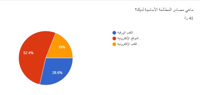 وفي استبيان جرى العمل وفق عينة من 42 مشاركاً، سألنا ما هي مصادر المطالعة الأساسية لديك؟