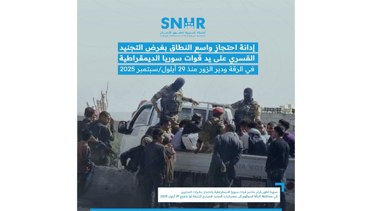 وتشير المعلومات الميدانية التي وثّقتها الشبكة السورية لحقوق الإنسان إلى أن الهدف من هذه العمليات هو سَوق المحتجزين إلى معسكرات التجنيد الإجباري التابعة لقوات “قسد”، في انتهاك صارخ لمبادئ القانون الدولي الإنساني.